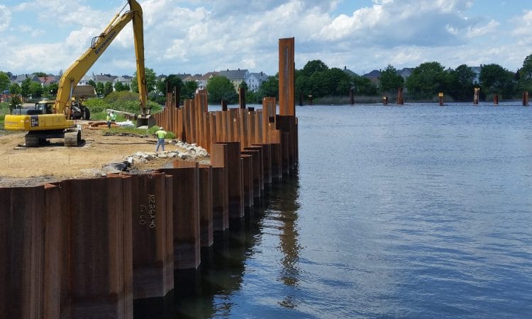A steel sheet wall like the one pictured above could bring the Baldwin Street side of the creek level with the McLaughlin Run Road side and greatly increase flow capacity.